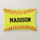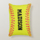Yellow Fastpitch Softball Custom Accent Pillow: A sweet decoration for softball-themed bedrooms or game rooms. Type any text (player name, team name, jersey number, etc.) in the custom text box to personalise it!