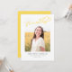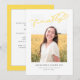 This modern graduation announcement features the word finally written in sunny yellow over a single photo. The back of the card can be used for additional text or as an invitation.