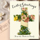 A pretty reproduction of a floral cross vintage Easter card, it has been edited to clean the image up, and it has a reproduction of a vintage postcard on the back so that you can write a message. Send it in the mail or give it with an Easter gift. This is a pretty choice for a religious greeting. Customise the message on the front of the card using the editing tool in the listing to personalise the family name.