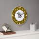 Yellow Floral Frame round photo frame behind the hour marks, Place your photo here custom wall clock, your photo will appear behind the round photo frame for a truly professional look - white gold dots for hour marks - 12,3,6 and 9 being larger dots, in a diamond shaped pattern looks great on round or square clocks