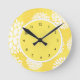 Elegant and modern yellow and white floral clock. Lemon Yellow background with white flowers and black clockface for home wall clock. This design will enhance any home or office.