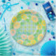 With a touch of pink and a hint of blue, and a patterned background.