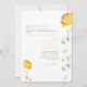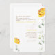 Rounded Wedding Invitation. White background. Modern. Wedding Website. Yellow floral stem. Yellow and gold text.