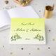This lovely yellow floral wedding guest book is decorated with a gorgeous bouquet of daffodils, narcissus and white lilacs and set on a golden yellow gradient. Customise text for your special occasion.