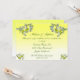 This lovely yellow floral wedding reception invitation just glows with the joy of the occasion. The front is decorated with bouquets of daffodils, narcissus and white lilacs. All are set on a sunny golden yellow gradient. The image is repeated on the back. All text can be customised to suit your individual occasion.