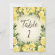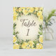 Elegant and romantic yellow floral and foliage with gold glitter wedding reception 5"x7" table number, printed on the front and back. Design one for each table. Contact me for assistance with your customisations or to request additional matching or coordinating Zazzle products for your shower or other wedding events.