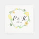 A modern and elegant wedding invitation with a yellow floral wreath.