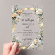 A clear, transparent background. Decorated with white and yellow florals and a golden ribbon. Personalise and add your names and details.