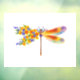 Artistically painted, floral dragonfly in contrasting orange and purple with yellow, bright, blooming California poppy and blue wildflowers on white background.