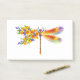 Artistically painted, floral dragonfly in contrasting orange and purple with yellow, bright, blooming California poppy and blue wildflowers on white background.