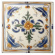 summery sicilian ceramic tile,italian hand painted pattern,mediterranean orange portuguese design,gold cream blue and white,summer dark flowers floral,minimalist minimal simple portugal,authentic classic traditional painting,vintage retro antique rustic,folk art spanish mexican talavera,indigo golden yellow flower
