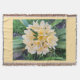 A quality printed throw has its advantages. This is a much finer weave throw than its loopier cousins, and though lighter, it is worth the investment for custom room accessorizing. The back is much prettier than the typical brown, and the fringe on the long sides very vivid, the selvage nicely done. Before photographing, I washed the throw in cold water, delicate, with a thicker woven throw the same size. On tumble dry low, this throw was dry in half the time as the other. This is a very practical quality if you use throws for furniture covers or to wrap up in frequently. The sleekness of the fabric makes it a great layer for accenting or protecting without the feeling of sitting on too much stuff. Perfect for napping or when you feel a light chill coming on. The color printing is beautiful and on this fabric, matched the design and color of my Photoshop image. This is an advantage for blending room fabrics and colors. The fringe on the short sides prints the colors from the design image and therefore varies from the side fringe. I streaked a white fractal line through the plaid pattern to give the illusion of weaving. This printed as crisp as an illusory thread, and put some white in the short side fringe, showing another advantage of print vs loomed- for artistic purposes, line lines, detail, and color integrity can be planned and preserved. My loomed throws have color limitations and more of a needlepoint texture. Print throws reproduce an exact image. The throw felt a little stiff straight out of the package, but this went away in the first delicate wash. Of course I searched the wash water for ink or bleeding and there was none.