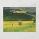This postcard features a beautiful view of yellow flowers and a mountainside in Armenia. Photo credit: Naira Babayan, 2021.