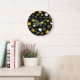 Wall Clock, 25.4 cm Round Black Wooden Frame
