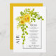 Yellow flowers, arch and monogram fall wedding menu