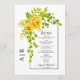 This beautiful wedding menu card showcases an enchanting design that incorporates a delightful arch frame adorned with vibrant yellow cactus flowers and lush green leaves, elegantly positioned in the left corner. The inclusion of your monogram adds a personal touch to this captivating artwork. The names are thoughtfully presented in an exquisite script typography, further enhancing the overall aesthetic appeal. The back of the menu card is adorned with a solid yellow colour, creating a harmonious and visually pleasing composition. The cover has been designed using some assets from Freepik.com