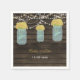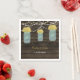 Rustic Barnwood, dangling string lights with yellow flowers in a mason jar wedding personalised paper wedding napkins. Matching products also available