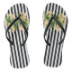 Yellow flowers on black and white stripes jandals