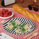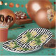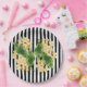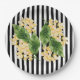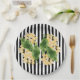 Yellow flowers on black and white stripes paper plate