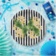 Yellow flowers on black and white stripes