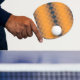 Yellow, geometric, lively, abstract trendy pattern ping pong paddle