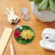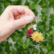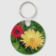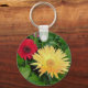 a keychain with a yellow and red gerber daisy on it.