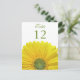 Use the personalise option to change the table number on these yellow gerbera daisy flower wedding or other special occasion table number cards. For these, you have to change the table number on each card, add one copy to your cart, and repeat the process until you have all the cards you need. If you want to do more extensive changes including changing the font, font colour, or background colour, use the customise option. Sunny yellow and green gerber daisy floral table cards.