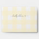 This envelope features a classic gingham design. The script heading is an image that cannot be edited. All of the other text is fully editable. For more advanced customisation of this design, simply select the "Customise It" button above.