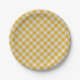 Yellow Gingham Plaid Checkered Pattern Paper Plate