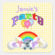 Bright and Cheery- yellow gingham - a puffy cloud with plushyanimals all having fun- the little plush lamb in the middle with it's party balloons. Customisable and can be used for boy's or girl's birthday party.