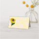 Country chic folded place card done in a yellow and white gingham pattern, with vintage artwork of a sunflower, on the front. Personalise the custom text, on the back of the card to read what you want. Personalise the front of each card, by hand, for your wedding reception.