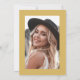 The back of the invitation features space for a photo of the graduate with a yellow gold border, making it a personal and memorable keepsake for friends and family. This version is shown in a yellow gold, black, and white color scheme, but all colors—including the cap, fonts, accents, and photo layout—are fully customizable to match school colors or personal style. A modern and celebratory way to invite loved ones to honor this exciting milestone.