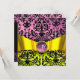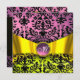 YELLOW GOLD RIBBON PINK BLACK DAMASK MONOGRAM INVITATION