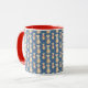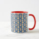 A blue coffee mug with sweet yellow dogs wearing their own bandanna. A perfect gift for a dog lover.