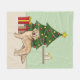 Yellow Golden Retriever With Green Christmas Tree Fleece Blanket