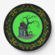 Yellow Green Black Cats Tombstone Tree Halloween Paper Plate