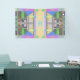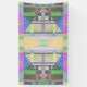 Colourful geometric shapes pattern, custom made artwork in prominent shades of yellow, green, blue, purple and with additional shades of burgundy, silver, grey, pink, gold. Elegant trendy digital art design.