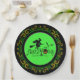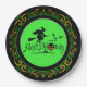 Yellow Green Happy Halloween Witch And Bats Paper Plate