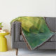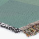 A quality printed throw has its advantages. This is a much finer weave throw than its loopier cousins, and though lighter, it is worth the investment for custom room accessorizing. The back is much prettier than the typical brown, and the fringe on the long sides very vivid, the selvage nicely done. Before photographing, I washed the throw in cold water, delicate, with a thicker woven throw the same size. On tumble dry low, this throw was dry in half the time as the other. This is a very practical quality if you use throws for furniture covers or to wrap up in frequently. The sleekness of the fabric makes it a great layer for accenting or protecting without the feeling of sitting on too much stuff. Perfect for napping or when you feel a light chill coming on. The color printing is beautiful and on this fabric, matched the design and color of my Photoshop image. This is an advantage for blending room fabrics and colors. The fringe on the short sides prints the colors from the design image and therefore varies from the side fringe. I streaked a white fractal line through the plaid pattern to give the illusion of weaving. This printed as crisp as an illusory thread, and put some white in the short side fringe, showing another advantage of print vs loomed- for artistic purposes, line lines, detail, and color integrity can be planned and preserved. My loomed throws have color limitations and more of a needlepoint texture. Print throws reproduce an exact image. The throw felt a little stiff straight out of the package, but this went away in the first delicate wash. Of course I searched the wash water for ink or bleeding and there was none.
