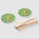 Celebrate Mardi Gras with these hand fans in bright colours of yellow, green and purple on a dark green background