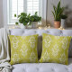 A vibrant yellowish green, sort of a chartreuse with floral damask in whites and pale grey. Sort of has a vintage feel to it...retro colour.