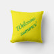 Order this lemony sunny yellow throw pillow with pretty grass-green lettering to add a warm summer ambience to your home! Solid yellow on the back. We've made a template to make it easy for you to change the "Welcome summer" to your own words if you'd like. Charming anywhere a splash of pretty warm yellow and green is at home. Has a 100% USA made cotton cover. Cover is machine washable. Other fabric choices with different prices are available.