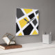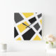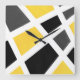 Wall clock printed with original geometric acrylic painting in yellow, grey, black and white.