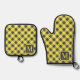 Yellow Grey Buffalo Plaid Gingham Monogram Cute Oven Mitt & Pot Holder Set
