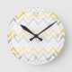 Yellow Grey Chevrons Ikat Pattern Round Clock