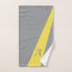 Trendy abstract illuminating yellow and ultimate grey stylish geometric grey colour block bath towel set personalised with your monogram and name.