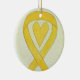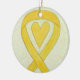 The heart awareness ribbon holiday pendant art ornament features the painting of a yellow awareness ribbon heart. The yellow awareness heart ribbon art can be customised with personalised messages to make great awareness cause ornaments or pendants for fundraisers, awareness Christmas or holiday gifts, or awareness ribbon merchandise other special cause events or occasions. The yellow awareness ribbon colour shows support for bone cancer or osteosarcoma, support our troops / armed forces return, MIA/POW, suicide prevention, endometriosis, bladder cancer, adoptive parents, craniofacial acceptance, & spina bifida plus more.