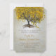 Enchanted Forest Yellow and Silver Elegant Heart Leaf Tree Wedding Invitations