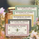 Label your own honey, candles, beeswax and more with this vintage black and yellow honeybee sticker with a dark green border. Personalise with your apiary business name at the top and add in your location or address below. You can edit the descriptive text to match your product or keep it general to match with anything your bees might create. Two additional vintage bees act as bullet points in this design.