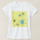 This Yellow Iconic Atomic Starbursts T-Shirt pattern features iconic atomic starbursts. That’s right! The old school, yellow coloured background with gold speckles is the perfect backdrop for the vibrant turquoise, soothing celery, and kitschy pear green coloured circles. The spots of colour are sporadically placed in various sizes with overlaying black V shaped lines to form the mod sputnik starbursts. Styled after a 1950’s dish pattern, this retro inspired design has everything you need to be truly mid century modern.